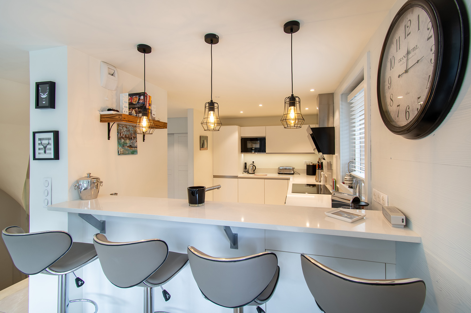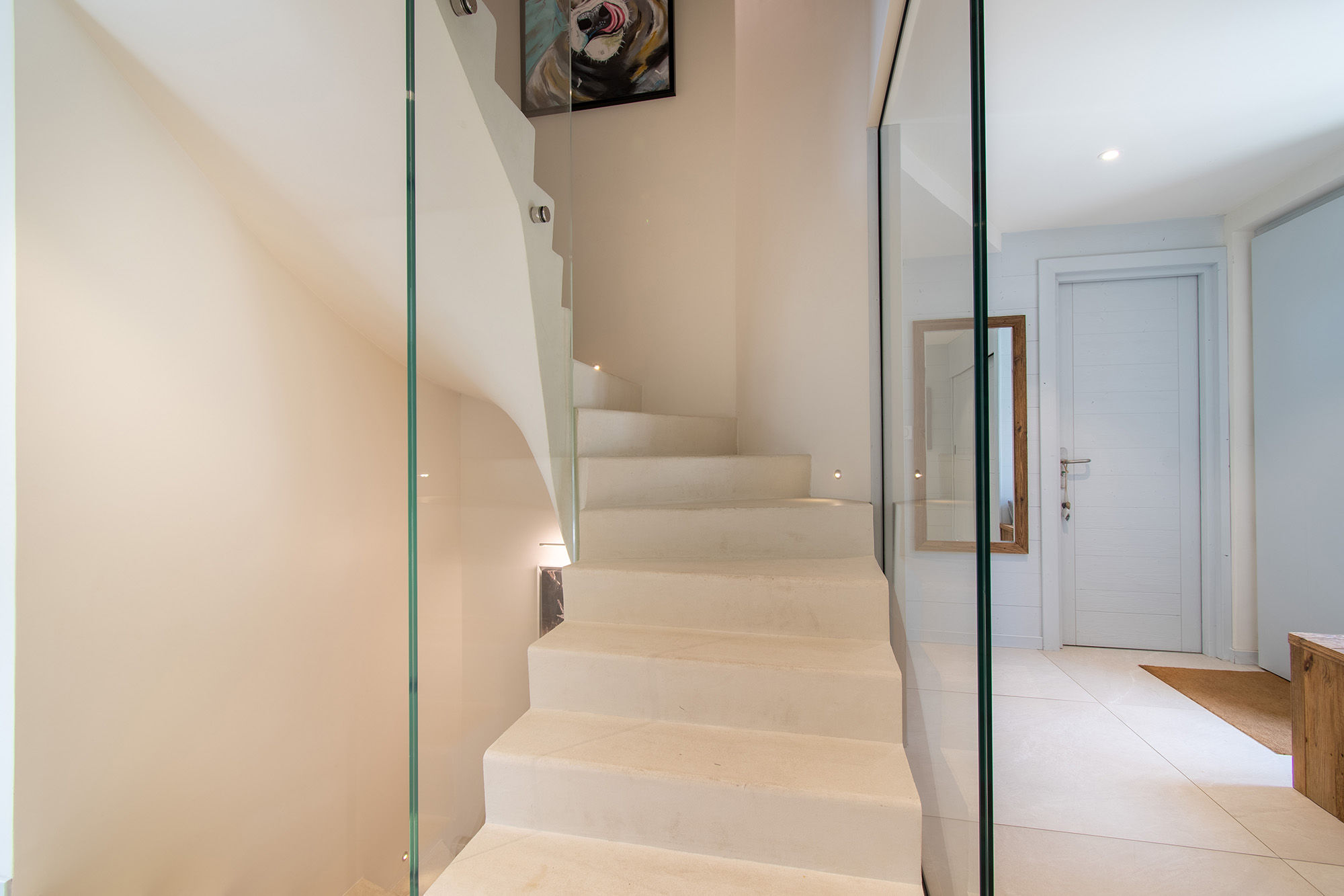 Incorporating elements of glass, stainless steel, antique wood and stone, an empty shell was transformed into a unique property with all the comforts of modern mountain living.